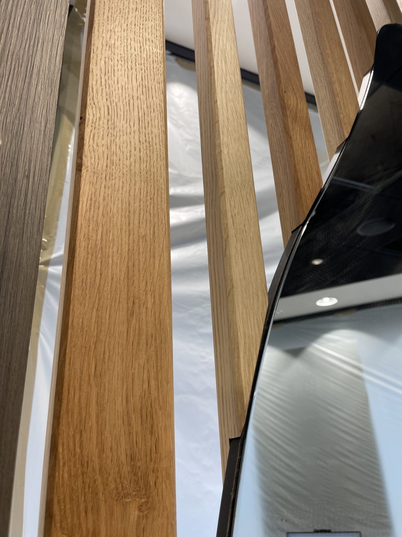 L’originalité s’exprime à travers chaque détail du projet. Les claustras des vitrines, entièrement dessinés sur mesure, structurent l’espace tout en créant un jeu de transparence et d’attractivité depuis l’extérieur. Le mobilier mêle pièces chinées puis relookées, apportant caractère et authenticité à l’ensemble.