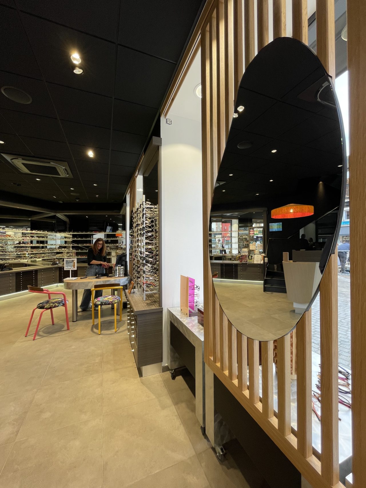 Pour ce projet d’aménagement de boutique d’optique, le parti pris a été clair dès les premières esquisses: s’affranchir des codes traditionnels pour créer un lieu unique, identifiable et résolument contemporain.