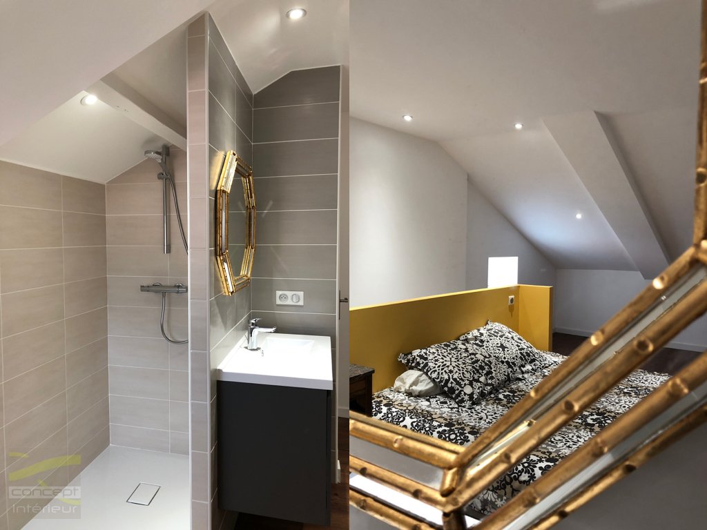 Après un rafraichissement les espaces perdus et inutilisés dans nos maisons deviennent des espaces confortables et utiles. Une chambre d’amis à été créée dans ces combles perdus avec un coin sanitaires ouvert sur la chambre. Les enfants et petits enfants trouvent tout à fait leur place dans cette nouvelle pièce rénovée.