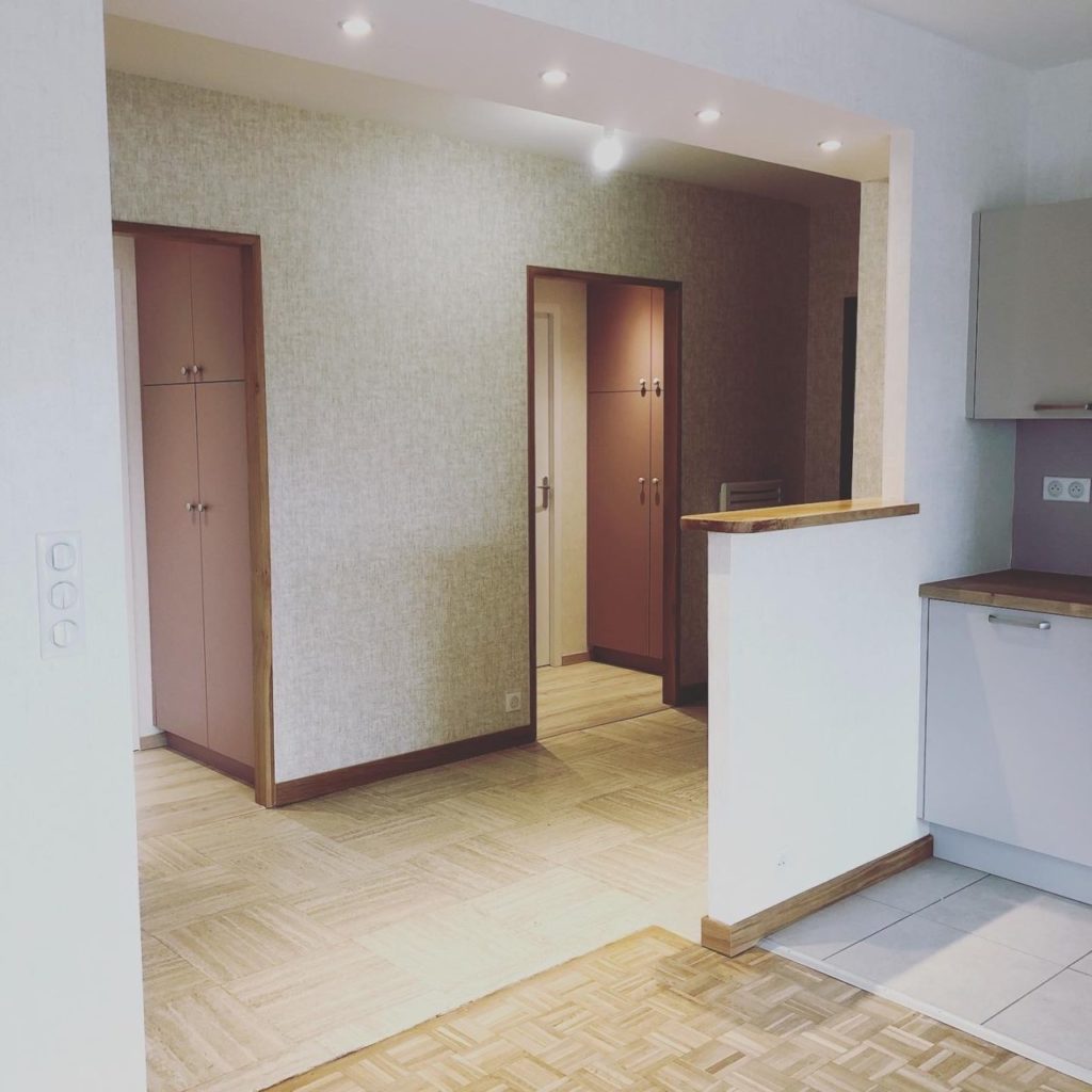 L’architecture intérieure de cet appartement à été totalement repensée. L’aménagement de l’appartement comporte des modifications fortes, l’ouverture de la cuisine sur le séjour. La Salle de bain est plus moderne et plus confortable avec une grande douche et des rangements.